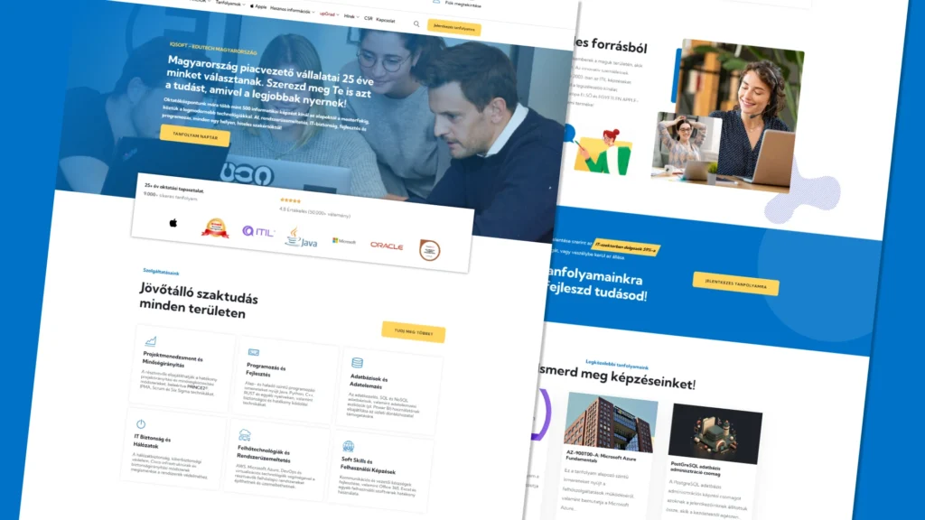 Az IQSOFT az informatikai és technológiai képzések piacán az egyik legismertebb és legmeghatározóbb szereplő Magyarországon. Egy ilyen volumenű és jelentőségű cég esetében az online megjelenés nem csupán egy „névjegy”, hanem üzleti eszköz: a tanfolyamok bemutatása, a jelentkezési folyamatok, valamint a hitelesség és szakmai színvonal kommunikálása mind a weboldalon keresztül történik.